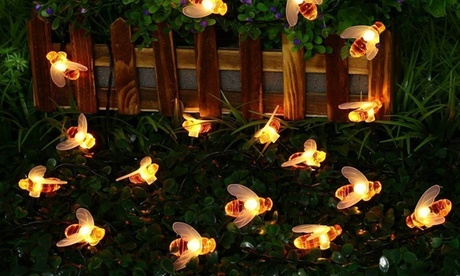Hoy Groupon ofrece estas luces solares Honey Bee vendidas por Dynergy Luces solares Honey Bee Al estar expuestos al sol durante el día comienza a iluminarse por la noche automáticamente cuando se enciende Alimentado por la energía solar El tamaño de cada abeja es de 3 5 x 3 5 cm 6.5 pies de cable y 13.5 pies de cubierta de luces (20 pies de largo total) Dimensiones del paquete:17 x 9.2 x 8.4 cm Peso: 300 gramos 30 abejas en cada paquete