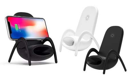 Groupon ofrece este cargador inalámbrico para móvil con forma de minisilla vendido por FlyGlow Global Trading Ltd Dos bobinas incorporadas pueden proporcionar un área de carga más grande Diseño: minisilla Favorece la disipación de calor del ventilador que el teléfono se enfríe mantiene la carga rápida y mejora la eficiencia de carga Frecuencia de funcionamiento: 100-205KHZ Peso aprox: 230g Tamaño: 9 8 x 9 8 x 14 2cm Material: ABS