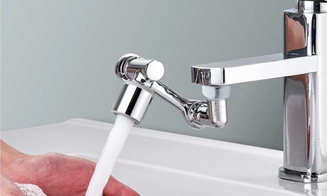 Groupon ofrece este extensión para grifo giratorio 1080° vendido por Grouplineshop S R L Rotación de 1080° 2 modos de flujo de agua Material: ABS Universal Diámetro 22/24 mm Fácil instalación